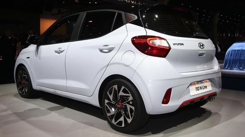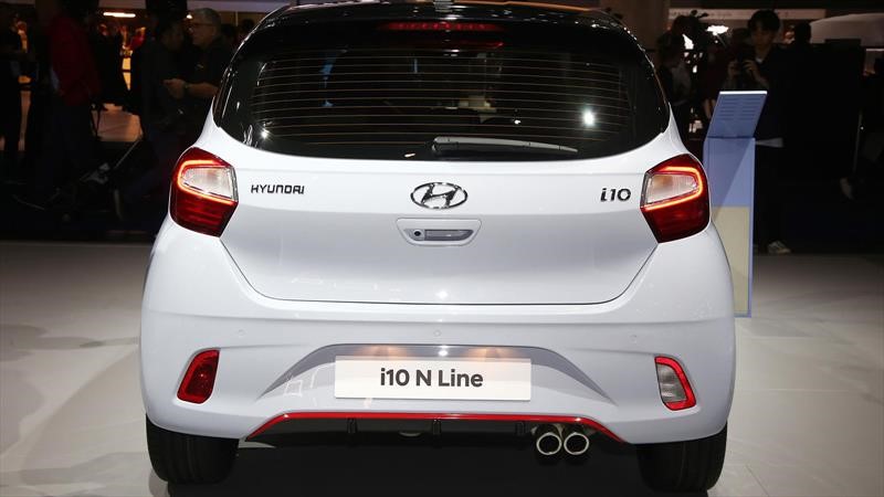 Aparte de todo lo mencionado, Hyundai aprovechó Frankfurt para mostrar el paquete N Line para el i10, siendo el cuarto modelo de los coreanos en llevarlo. Muy similar al paquete GT Line en Kia, este ensalza el diseño del pequeño city car con algo más de actitud. Los cambios no son solo faldones e insignias. En Hyundai fueron al extremo de añadir una parrilla especial más ancha, con insertos de color rojo y con tres luces LED de uso diurno a cada costado de esta. Han cambiado los encastres de los neblineros y la parte baja del parachoques frontal, con un pequeño faldón rojo. En la parte posterior, solo asoman dos salidas de escape dobles, como principal rasgo identificatorio. Finalmente, las llantas, son de 16", en acabado bicolor y con detalles rojos.