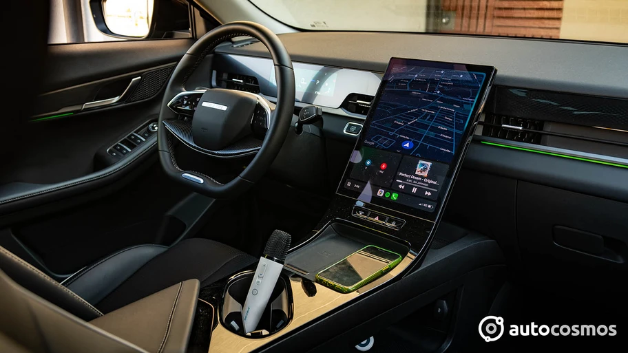 El interior, si bien es minimalista en diseño y muy digital (concentra todo en una gran pantalla vertical) tiene muy buena calidad general, excelente vista hacia el frente y mucho espacio, incluyendo 35 compartimientos repartidos por todo el habitáculo.