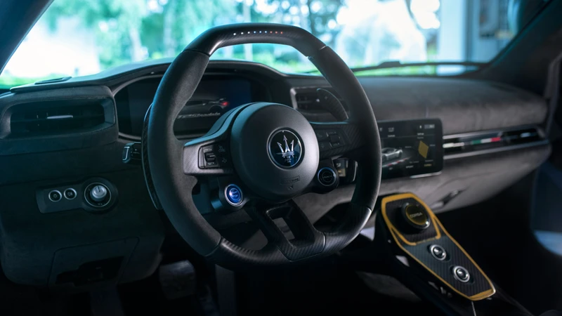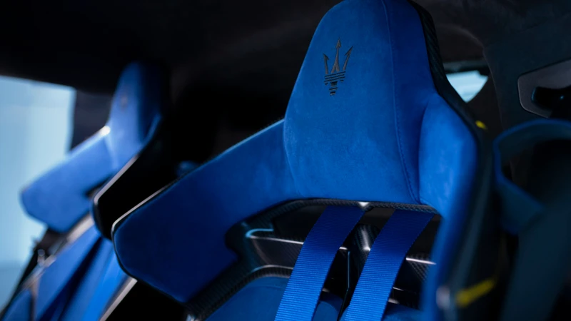 Maserati tiene disponibles asientos deportivos semejantes a los del MC20, o unas exclusivas butacas de fibra de carbono de doble carcasa con extremos de espuma, levemente más cómodos que los del GT2. La marca ofrecerá una barra trasera opcional para cinturones de carreras de cuatro puntos para los track days.
